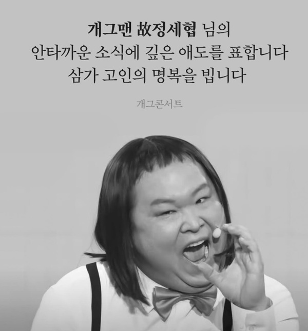 KBS2 '°³±×ÄܼƮ'´Â 7ÀÏ °ø½Ä SNS¿¡ "°³±×¸Ç °í(ͺ) Á¤¼¼Çù ´ÔÀÇ ¾ÈŸ±î¿î ¼Ò½Ä¿¡ ±íÀº ¾Öµµ¸¦ Ç¥ÇÕ´Ï´Ù. »ï°¡ °íÀÎÀÇ ¸íº¹À» º÷´Ï´Ù"¶ó¸ç ºÎ°í¸¦ ¾Ë·È´Ù.