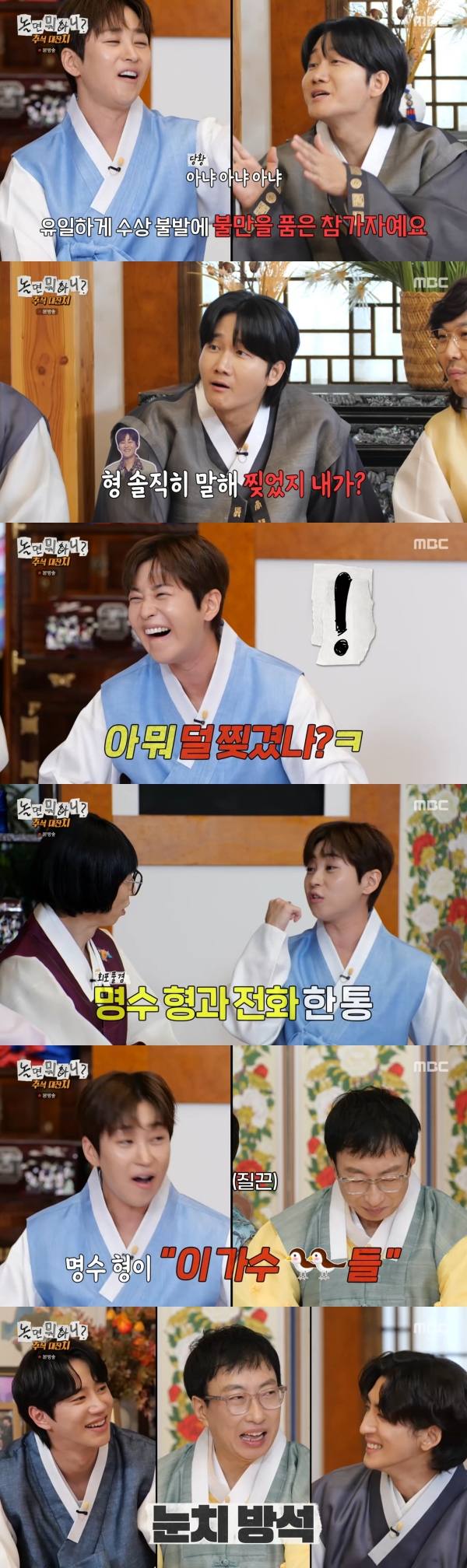 µòµòÀº ´çȲÇϸç "Àú ÇüÀ̶û ÅëÈÇÏ¸é ¾È µÇ°Ú´Ù"°í ¹ÝÀÀÇß´Ù. ±×´Â "ÀÌ°Ô ¾î¶»°Ô µÈ °Å³Ä¸é ¹«´ë ³¡³ª°í ±âºÐ ÁÁ°Ô °¡°í ÀÖ¾ú´Âµ¥ ¸í¼ö Çü¿¡°Ô ÀüÈÇß´Ù. ¸í¼ö ÇüÀÌ 'ÀÌ °¡¼ö XXµé'À̶ó°í ÇÏ´õ¶ó. '»óÀ» °¡¼ö XXµé ¸ô¾ÆÁÙ °Å¸é ¿Ö ÇϳÄ'°í ÇØ¼ Àúµµ ±× ¸» µè°í °©ÀÚ±â"¶ó°í Æø·Î¸¦ À̾´Ù.