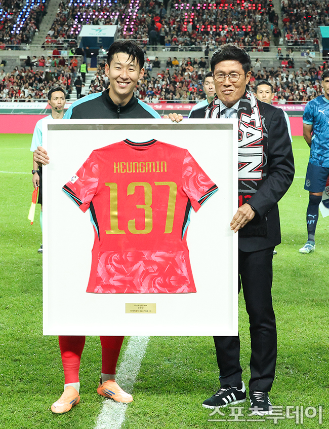 [½ºÆ÷Ã÷Åõµ¥ÀÌ ÆØÇöÁØ ±âÀÚ] 14ÀÏ ¼­¿ï¿ùµåÄŰæ±âÀå¿¡¼­ ¿­¸° Ã౸ ±¹°¡´ëÇ¥ÆÀ Çѱ¹°ú ÆÄ¶ó°úÀÌÀÇ Ä£¼±°æ±â, ĸƾ ¼ÕÈï¹ÎÀÇ 137°æ±â ÃÖ´ÙÃâÀü ±â³ä½ÄÀÌ ¿­¸®°í ÀÖ´Ù. »çÁø ¿À¸¥ÂÊÀº Ã౸·¹Àüµå Â÷¹ü±Ù. 2025.10.14.