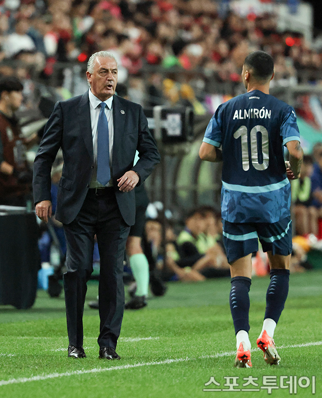 [½ºÆ÷Ã÷Åõµ¥ÀÌ ÆØÇöÁØ ±âÀÚ] 14ÀÏ ¼¿ï¿ùµåÄŰæ±âÀå¿¡¼ ¿¸° Ã౸ ±¹°¡´ëÇ¥ÆÀ Çѱ¹°ú ÆÄ¶ó°úÀÌÀÇ Ä£¼±°æ±â, ÆÄ¶ó°úÀÌ ±¸½ºÅ¸º¸ ¾ËÆÄ·Î °¨µ¶ÀÌ ¼±¼öµé¿¡°Ô À̾߱âÇϰí ÀÖ´Ù. 2025.10.14.