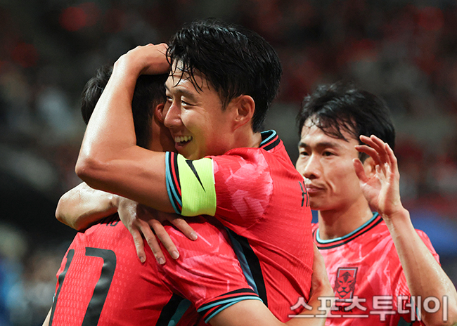 [½ºÆ÷Ã÷Åõµ¥ÀÌ ÆØÇöÁØ ±âÀÚ] 14ÀÏ ¼¿ï¿ùµåÄŰæ±âÀå¿¡¼ ¿¸° Ã౸ ±¹°¡´ëÇ¥ÆÀ Çѱ¹°ú ÆÄ¶ó°úÀÌÀÇ Ä£¼±°æ±â, ¼ÕÈï¹ÎÀÌ ¾öÁö¼ºÀÇ °ñÀ» ÃàÇÏÇϰí ÀÖ´Ù. 2025.10.14.