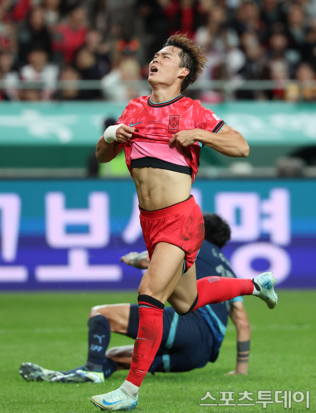 [½ºÆ÷Ã÷Åõµ¥ÀÌ ÆØÇöÁØ ±âÀÚ] 14ÀÏ ¼¿ï¿ùµåÄŰæ±âÀå¿¡¼ ¿¸° Ã౸ ±¹°¡´ëÇ¥ÆÀ Çѱ¹°ú ÆÄ¶ó°úÀÌÀÇ Ä£¼±°æ±â, Çѱ¹ ¿ÀÇö±Ô°¡ °ñÂù½º¸¦ ³õÄ¡¸ç ¾Æ½¬¿öÇϰí ÀÖ´Ù. 2025.10.14.