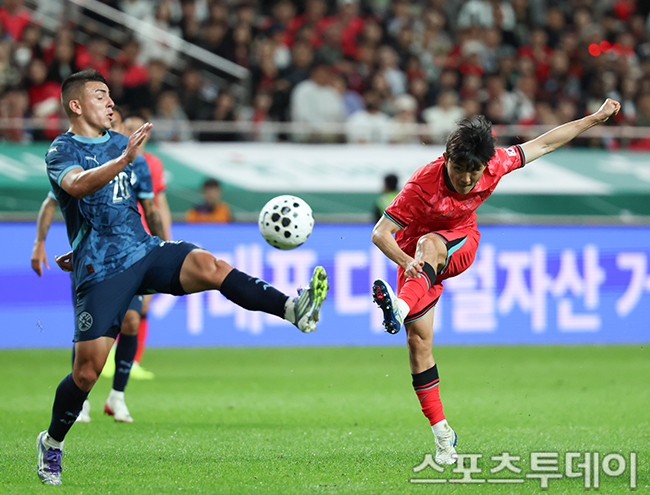 [½ºÆ÷Ã÷Åõµ¥ÀÌ ÆØÇöÁØ ±âÀÚ] 14ÀÏ ¼¿ï¿ùµåÄŰæ±âÀå¿¡¼ ¿¸° Ã౸ ±¹°¡´ëÇ¥ÆÀ Çѱ¹°ú ÆÄ¶ó°úÀÌÀÇ Ä£¼±°æ±â, Çѱ¹ ȲÀιüÀÌ ½¸À» Çϰí ÀÖ´Ù. 2025.10.14.