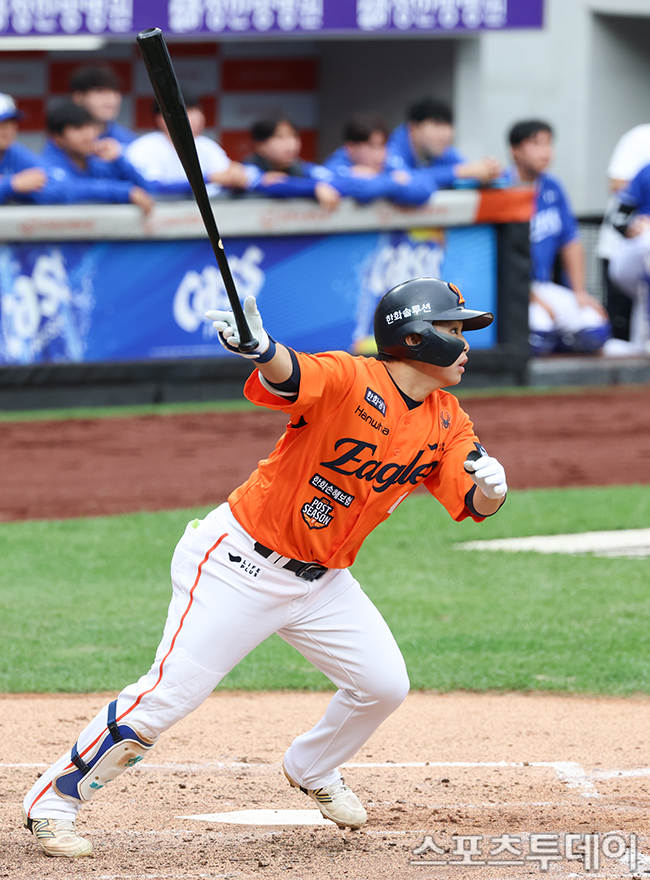 [´ëÀü=½ºÆ÷Ã÷Åõµ¥ÀÌ ÆØÇöÁØ ±âÀÚ] 18ÀÏ ´ëÀüÇÑÈ­»ý¸íº¼ÆÄÅ©¿¡¼­ ¿­¸° 2025 KBO¸®±× Æ÷½ºÆ®½ÃÁð Ç÷¹ÀÌ¿ÀÇÁ »ï¼º ¶óÀÌ¿ÂÁî¿Í ÇÑÈ­ À̱۽ºÀÇ 1Â÷Àü, 2ȸ¸» 2»ç ¸¸·ç ÇÑÈ­ ¹®ÇöºóÀÌ ½Ï¾µÀÌ ¾ÈŸ¸¦ ¶§¸®°í ÀÖ´Ù. 2025.10.18.