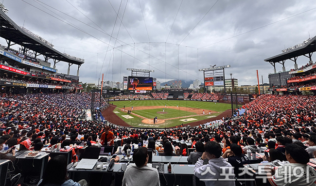 [´ëÀü=½ºÆ÷Ã÷Åõµ¥ÀÌ ÆØÇöÁØ ±âÀÚ] 18ÀÏ ´ëÀüÇÑÈ­»ý¸íº¼ÆÄÅ©¿¡¼­ ¿­¸° 2025 KBO¸®±× Æ÷½ºÆ®½ÃÁð Ç÷¹ÀÌ¿ÀÇÁ »ï¼º ¶óÀÌ¿ÂÁî¿Í ÇÑÈ­ À̱۽ºÀÇ 1Â÷Àü, ÆÒµéÀÌ °æ±âÀåÀ» °¡µæ ¸Þ¿ì°í ÀÖ´Ù. 2025.10.18.