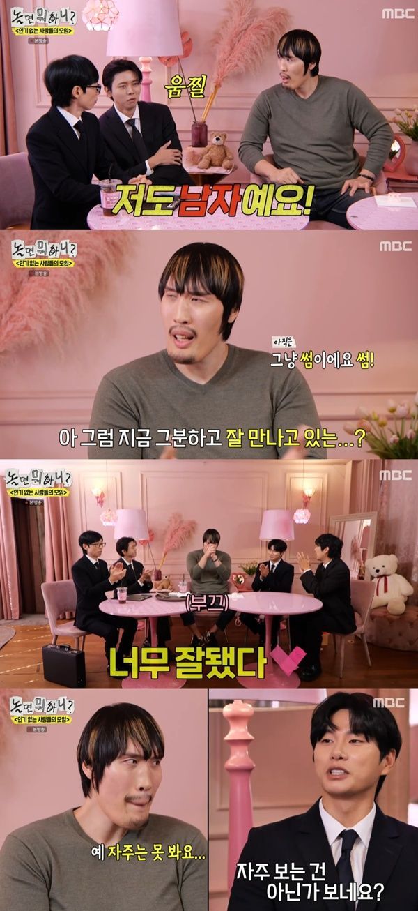 ÀÌ¿¡ ÃÖÈ«¸¸Àº ´çȲÇϸç "°°ÀÌ ÇÒ ¼öµµ ÀÖ°í, ½¬´Â ³¯ÀÌ ÀÖÀ» ¼öµµ ÀÖÁö ¾Ê³Ä. Àúµµ ³²ÀÚ´Ù. °áÈ¥µµ ¾È Çߴµ¥"¶ó¸ç ÁÖ¿ìÀ縦 ÅÍÄ¡Çß´Ù. ÀÌ¿¡ ÁÖ¿ìÀç°¡ ÈÖû°Å¸®ÀÚ À¯Àç¼®Àº "¾ê´Â ºÎ·¯Áø´Ù"°í ÇØ ¿ôÀ½À» ¾È°å´Ù.