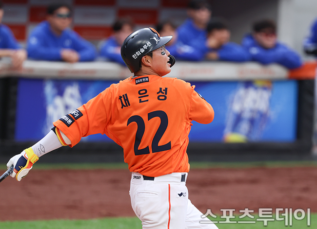 [´ëÀü=½ºÆ÷Ã÷Åõµ¥ÀÌ ÆØÇöÁØ ±âÀÚ] 19ÀÏ ´ëÀüÇÑÈ­»ý¸íº¼ÆÄÅ©¿¡¼­ ¿­¸° 2025 KBO¸®±× Æ÷½ºÆ®½ÃÁð Ç÷¹ÀÌ¿ÀÇÁ »ï¼º ¶óÀÌ¿ÂÁî¿Í ÇÑÈ­ À̱۽ºÀÇ 2Â÷Àü, 2ȸ¸» ÇÑÈ­ ¼±µÎŸÀÚ Ã¤Àº¼ºÀÌ ¶á°øÀ» ³¯¸®°í ÀÖ´Ù. °á°ú´Â ¾Æ¿ô. 2025.10.19.