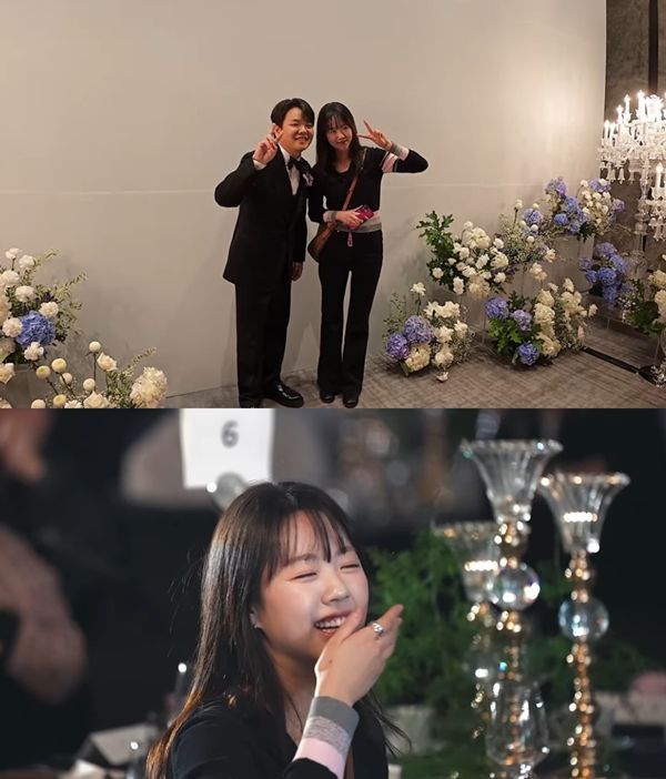 ÀÌ¿Í ÇÔ²² °ûÆ©ºê °áÈ¥½Ä ºêÀÌ·Î±× ¿µ»óµµ ÈÁ¦¸¦ ¸ðÀ¸°í ÀÖ´Ù. Áö³ 11ÀÏ ÁøÇàµÈ °ûÆ©ºä °áÈ¥½Ä¿¡ Çϰ´À¸·Î Âü¼®ÇÑ Áö¿¹ÀºÀÇ ¸ð½ÀÀÌ Æ÷ÂøµÈ °Í. MBN 'ÀüÇö¹«°èȹ', ³ÝÇø¯½º '´ëȯÀå ±â¾ÈÀå' µî¿¡¼ ¿¬À» ¸ÎÀº °ûÆ©ºê¿Í ÀǸ®¸¦ Áö۱â À§ÇØ Âü¼®ÇÑ °ÍÀ¸·Î º¸ÀδÙ. Áö¿¹ÀºÀº ȯÇÑ Ç¥Á¤°ú ¿ôÀ½À¸·Î ÆÒµéÀÇ °ÆÁ¤À» ´ú¾ú´Ù.