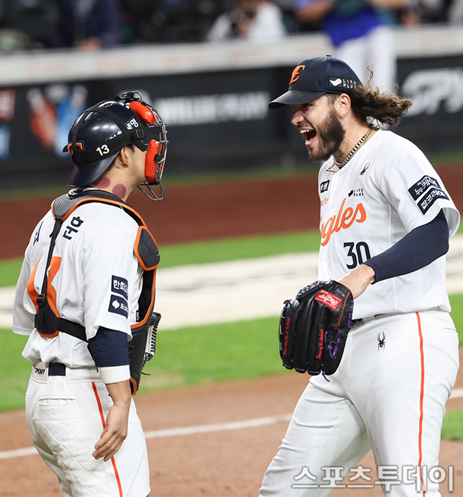 [´ëÀü=½ºÆ÷Ã÷Åõµ¥ÀÌ ÆØÇöÁØ ±âÀÚ] 24ÀÏ ´ëÀüÇÑÈ­»ý¸íº¼ÆÄÅ©¿¡¼­ ¿­¸° 2025 KBO¸®±× Æ÷½ºÆ®½ÃÁð »ï¼º ¶óÀÌ¿ÂÁî¿Í ÇÑÈ­ À̱۽ºÀÇ Ç÷¹ÀÌ¿ÀÇÁ 5Â÷Àü, 1ȸÃÊ 2»ç ¸¸·ç ÇÑÈ­ Æù¼¼°¡ »ï¼º ±èÅÂÈÆÀ» ¾Æ¿ô½Ã۸ç ÀÌ´×À» ³¡³»°í ÀÖ´Ù. 2025.10.24.
