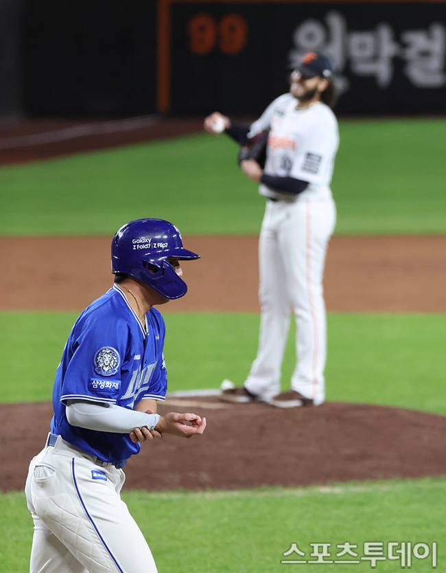 [´ëÀü=½ºÆ÷Ã÷Åõµ¥ÀÌ ÆØÇöÁØ ±âÀÚ] 24ÀÏ ´ëÀüÇÑÈ»ý¸íº¼ÆÄÅ©¿¡¼ ¿¸° 2025 KBO¸®±× Æ÷½ºÆ®½ÃÁð »ï¼º ¶óÀÌ¿ÂÁî¿Í ÇÑÈ À̱۽ºÀÇ Ç÷¹ÀÌ¿ÀÇÁ 5Â÷Àü, 3ȸÃÊ 2»ç 1·ç »ï¼º ±è¿µ¿õÀ» ÀÚµ¿ °íÀÇ4±¸·Î Ãâ·ç½Ã۰í ÀÖ´Ù. 2025.10.24.