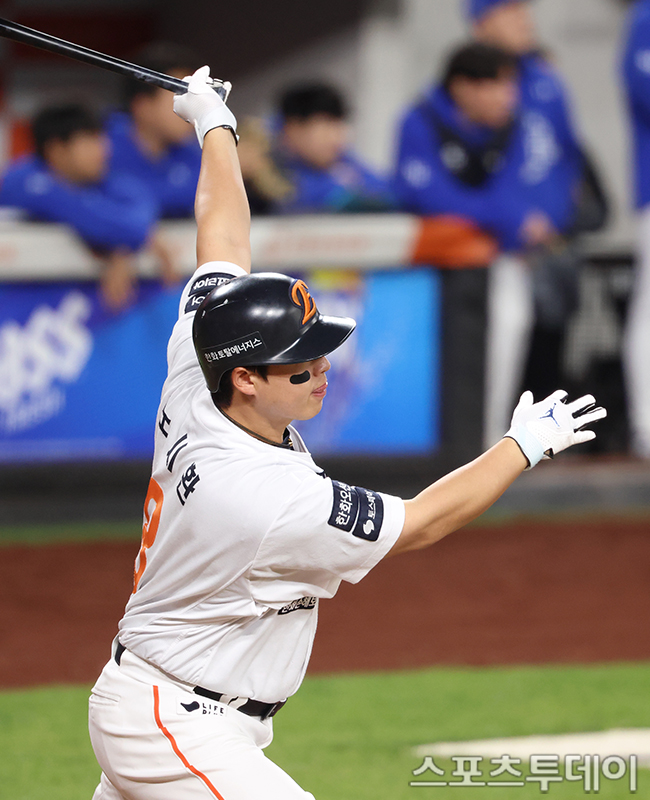 [´ëÀü=½ºÆ÷Ã÷Åõµ¥ÀÌ ÆØÇöÁØ ±âÀÚ] 24ÀÏ ´ëÀüÇÑÈ»ý¸íº¼ÆÄÅ©¿¡¼ ¿¸° 2025 KBO¸®±× Æ÷½ºÆ®½ÃÁð »ï¼º ¶óÀÌ¿ÂÁî¿Í ÇÑÈ À̱۽ºÀÇ Ç÷¹ÀÌ¿ÀÇÁ 5Â÷Àü, 3ȸ¸» 1»ç 2·ç ÇÑÈ ³ë½ÃȯÀÌ ¾ÈŸ¸¦ Ä¡°í ÀÖ´Ù. 2025.10.24.