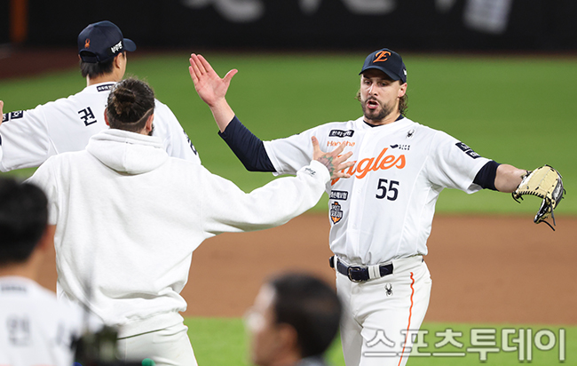 [´ëÀü=½ºÆ÷Ã÷Åõµ¥ÀÌ ÆØÇöÁØ ±âÀÚ] 24ÀÏ ´ëÀüÇÑÈ­»ý¸íº¼ÆÄÅ©¿¡¼­ ¿­¸° 2025 KBO¸®±× Æ÷½ºÆ®½ÃÁð »ï¼º ¶óÀÌ¿ÂÁî¿Í ÇÑÈ­ À̱۽ºÀÇ Ç÷¹ÀÌ¿ÀÇÁ 5Â÷Àü, ÇÑÈ­°¡ 11-2·Î ½Â¸®Çϸç Çѱ¹½Ã¸®Áî¿¡ ÁøÃâÇϰí ÀÖ´Ù. 2025.10.24.