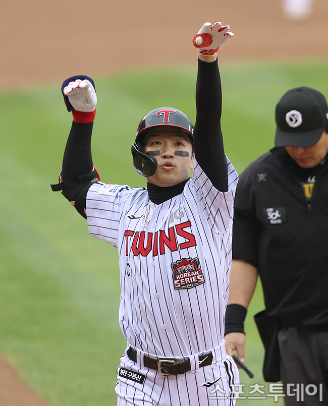 [½ºÆ÷Ã÷Åõµ¥ÀÌ ±Ç±¤ÀÏ ±âÀÚ] 2025 ½ÅÇÑÀºÇà SOL Bank KBO¸®±× Çѱ¹½Ã¸®Áî 1Â÷Àü ÇÑÈ­ À̱۽º¿Í LG Æ®À©½ºÀÇ °æ±â°¡ 26ÀÏ ¼­¿ï Àá½Ç¾ß±¸Àå¿¡¼­ ¿­·È´Ù. LG ¹ÚÇØ¹ÎÀÌ 5ȸ¸» 1Á¡ Ȩ·±À» Ä¡°í ÀÖ´Ù. 2025.10.26.