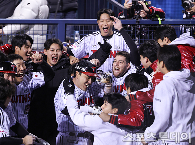[½ºÆ÷Ã÷Åõµ¥ÀÌ ÆØÇöÁØ ±âÀÚ] 27ÀÏ ¼­¿ï Àá½Ç¾ß±¸Àå¿¡¼­ ¿­¸° 2025 KBO¸®±× LG Æ®À©½º¿Í ÇÑÈ­ À̱۽ºÀÇ Çѱ¹½Ã¸®Áî 2Â÷Àü, 3ȸ 2»ç 1·ç Ȩ·±À» ÅÍÆ®¸° LG ¹Úµ¿¿øÀÌ ÃàÇϹްí ÀÖ´Ù. 2025.10.27.