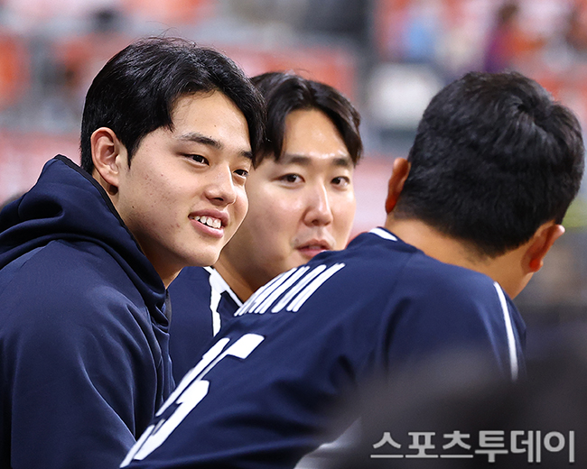 [½ºÆ÷Ã÷Åõµ¥ÀÌ ÆØÇöÁØ ±âÀÚ] 9ÀÏ ¼¿ï °íô½ºÄ«À̵¼¿¡¼ ¿¸° '2025 NAVER K-BASEBALL SERIES' ´ëÇѹα¹°ú üÄÚÀÇ Æò°¡Àü, ¹®µ¿ÁÖ°¡ µ¿·áµé°ú À̾߱⸦ ³ª´©°í ÀÖ´Ù. 2025.11.09.