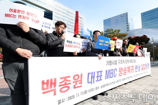 ¿¬µ·ºÒÄ«Ã÷°¡¸ÍÁ¡ÁÖÇùÀÇȸ, ´ëÇѰ¡¸Í°Å·¡»çÇùȸ, Àü±¹°¡¸ÍÁ¡ÁÖÇùÀÇȸ, Âü¿©¿¬´ë µîÀº 11ÀÏ ¿ÀÈÄ ¼¿ï ¸¶Æ÷±¸ »ó¾Ïµ¿ MBC »ç¿Á ¾Õ¿¡¼ '°¡¸Í»ç¾÷ ±¸Á¶Àû ¹®Á¦ ÇØ°á ¾ø´Â ¹éÁ¾¿ø ´ëÇ¥ MBC¹æ¼Û º¹±Í Æí¼º öȸ Ã˱¸' ±âÀÚȸ°ßÀ» ¿¾ú´Ù.