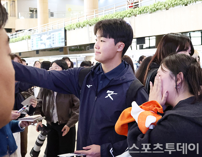 Á¤¿ìÁÖ°¡ Ãâ±¹ Àü ÆÒ¼ºñ½º¸¦ Çϰí ÀÖ´Ù. 2025.11.12.
