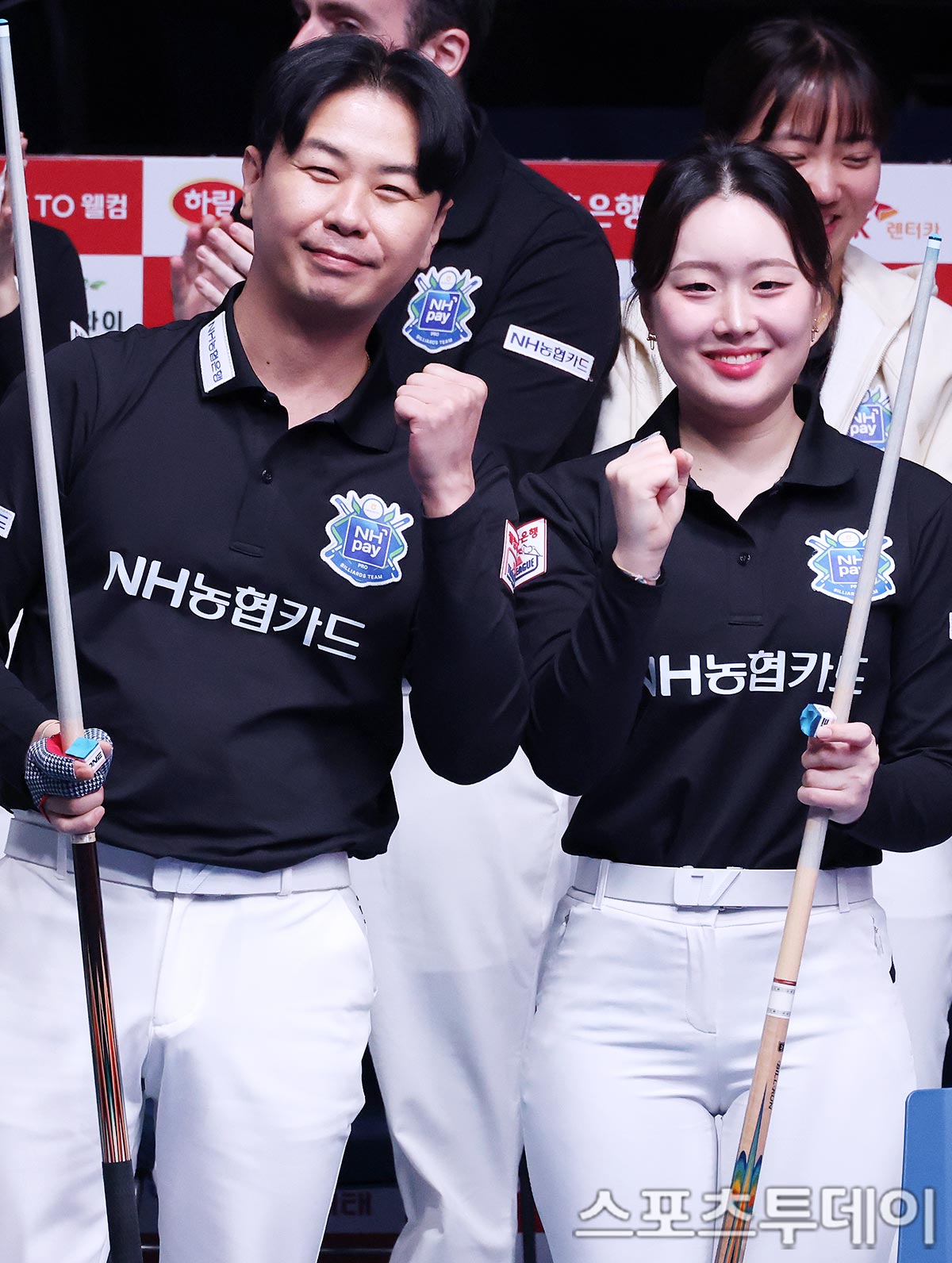 À̳¯ NH ³óÇùÄ«µå¿Í Çϸ² µå·¡°ïÁîÀÇ °æ±â¿¡¼ ±èÇö¿ì¿Í ±èº¸¹Ì°¡ ¼¼Æ® ½Â¸®ÈÄ Æ÷Á ÃëÇϰí ÀÖ´Ù.