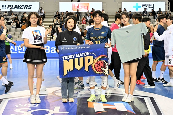 ÀÎõµµ½Ã°ø»ç´Â 22ÀÏ ¿ÀÈÄ 3½Ã ¼¿ï ¿Ã¸²ÇȰø¿ø Çڵ庼°æ±âÀå(ƼÄϸµÅ© ¶óÀÌºê ¾Æ·¹³ª)¿¡¼ ÁøÇàµÈ ½ÅÇÑ SOL Bank 25-26 Çڵ庼 H¸®±× ³²ÀںΠ1¶ó¿îµå Á¦2¸ÅÄ¡ µ¥ÀÌ Ã¹ ¹øÂ° °æ±â¿¡¼ Çϳ²½ÃûÀ» 26-21·Î ²ª¾ú´Ù.