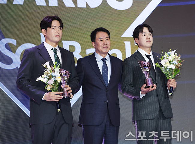 ºÏºÎ¸®±× Åõ¼ö»óÀ» ¼ö»óÇÏ´Â KIA ÀÌžç, LG ±èÁÖ¿ÂÀÌ ±è½ÃÁø °æ±â°¨µ¶°ü°ú ±â³äÃØ¿µÀ» Çϰí ÀÖ´Ù. 2025.11.24.