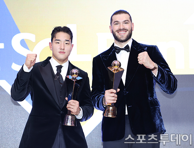 MVP ÇÑÈ ÄÚµð Æù¼¼, ½ÅÀλó KT ¾ÈÇö¹ÎÀÌ ±â³äÃÔ¿µÀ» Çϰí ÀÖ´Ù. 2025.11.24.