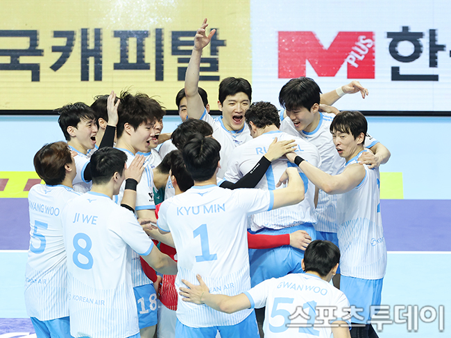 ´ëÇÑÇ×°øÀÌ KB¼ÕÇØº¸ÇèÀ» »ó´ë·Î ¼¼Æ®½ºÄÚ¾î 3-0 ½Â¸®¸¦ Çϰí ÀÖ´Ù. 2025.11.25.