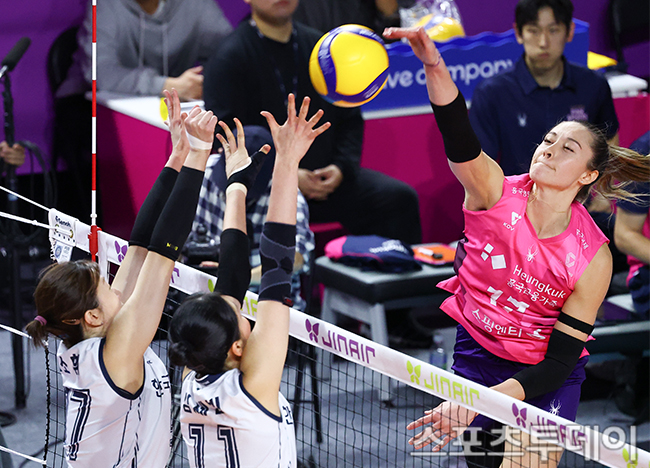 [ÀÎõ=½ºÆ÷Ã÷Åõµ¥ÀÌ ÆØÇöÁØ ±âÀÚ] 3ÀÏ ÀÎõ »ï»ê¿ùµåüÀ°°ü¿¡¼ ¿¸° 2025-2026 V¸®±× ¿©ÀںΠÈï±¹»ý¸í°ú Çѱ¹µµ·Î°ø»çÀÇ °æ±â, Èï±¹»ý¸í ·¹º£Ä«°¡ °ø°ÝÇϰí ÀÖ´Ù. 2025.12.03.