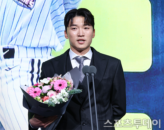 [½ºÆ÷Ã÷Åõµ¥ÀÌ ÆØÇöÁØ ±âÀÚ] 9ÀÏ ¼¿ï Àá½Ç ·Ôµ¥È£ÅÚ¿ùµå¿¡¼ ¿¸° 2025 KBO °ñµç±Û·¯ºê ½Ã»ó½Ä¿¡¼ °ñµçÆ÷Åä»óÀ» ¼ö»óÇÑ LGÆ®À©½º ¹ÚÇØ¹ÎÀÌ ¼Ò°¨À» ¸»Çϰí ÀÖ´Ù.