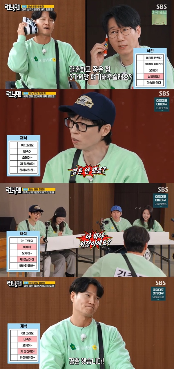 Áö¼®ÁøÀÌ "°áÈ¥Çϰí ÁÁÀº Á¡ ÀÖÀ¸¸é 3°¡Áö ¸»ÇØ´Þ¶ó"°í ÇÏÀÚ ±èÁ¾±¹Àº "3°¡Áö·Î µÇ³Ä"°í ³Ê½º·¹¸¦ ¶³¾ú´Ù. ÇÏÇϰ¡ "´ÜÁ¡ ¾ê±âÇØ ÁÙ ¼ö ÀÖ³Ä"°í ÇÏÀÚ ±èÁ¾±¹Àº "¾ø´Ù"°í Áï´äÇß´Ù.