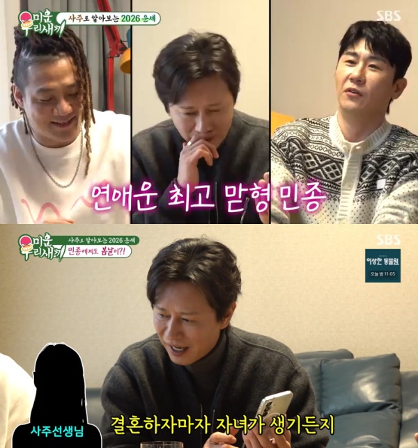 18ÀÏ ¹æ¼ÛµÈ SBS ¿¹´É '¹Ì¿î ¿ì¸® »õ³¢'(ÀÌÇÏ '¹Ì¿ì»õ')¿¡´Â À±¹Î¼ö, ¹Ú±º, À̽¿ìÀÇ À̾߱Ⱑ ÆîÃÄÁ³´Ù.