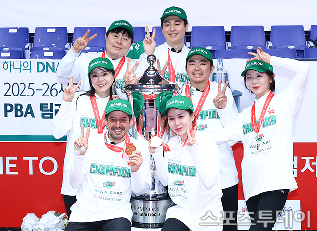 [°í¾ç(°æ±â)=½ºÆ÷Ã÷Åõµ¥ÀÌ ÆØÇöÁØ ±âÀÚ] 21ÀÏ °æ±âµµ °í¾ç ŲŨ½º PBA½ºÅ¸µð¿ò¿¡¼ ¿¸° 'À£ÄÄÀúÃàÀºÇà PBA ÆÀ¸®±× 2025-2026' SK·»ÅÍÄ«¿Í ÇϳªÄ«µåÀÇ Ã¨ÇǾð°áÁ¤Àü 6Â÷Àü¿¡¼ ÇϳªÄ«µå°¡ ½Â¸®Çϸç ÃÖÁ¾½ºÄÚ¾î 4-2·Î ¿ì½ÂÀ» Â÷ÁöÇß´Ù. ¿ì½ÂÄÅ µé¾î¿Ã¸° ÇϳªÄ«µå ¼±¼öµéÀÌ ±â³äÃÔ¿µÀ» Çϰí ÀÖ´Ù. 2026.01.21.
