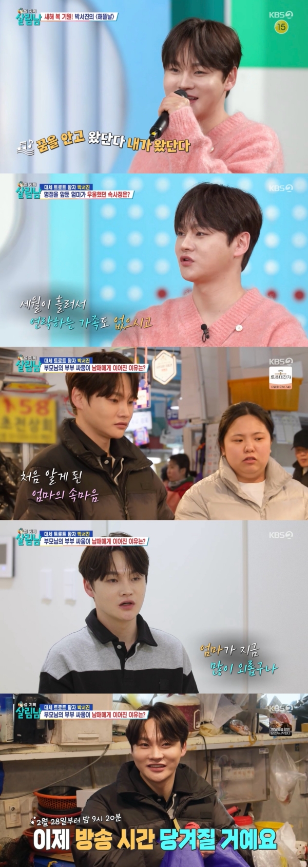 14ÀÏ ¹æ¼ÛµÈ KBS2 '»ì¸²ÇÏ´Â ³²ÀÚµé ½ÃÁð2'(ÀÌÇÏ '»ì¸²³²')´Â ¹Ú¼ÁøÀÇ 'ÇØ¶ã³¯' ¹«´ë·Î °æÄèÇÏ°Ô Æ÷¹®À» ¿¾ú´Ù. ÀÌ¾î ¼³³¯À» ¾ÕµÐ ¹Ú¼Áø °¡Á·ÀÇ Çö½Ç °ø°¨ ¿¡ÇǼҵ尡 ±×·ÁÁö¸ç Àç¹Ì¸¦ ¼±»çÇß´Ù.
