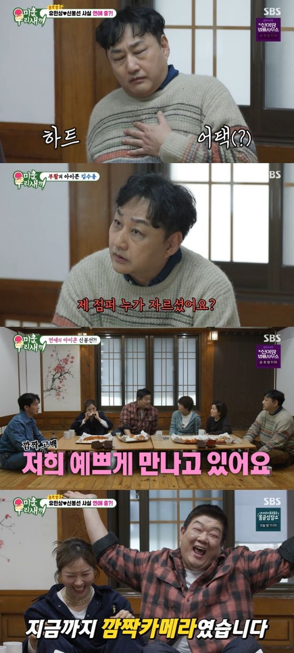 15ÀÏ ¹æ¼ÛµÈ SBS ¿¹´É '¹Ì¿î ¿ì¸® »õ³¢'(ÀÌÇÏ '¹Ì¿ì»õ')¿¡´Â Äڹ̵ð¾ð Çã°æÈ¯, Á¶Çý·Ã, ½ÅºÀ¼±, ±è¼ö¿ë, À̼º¹Ì ±×¸®°í ¹è¿ì ¹èÀ¯¶÷ÀÌ Ã⿬Çß´Ù.