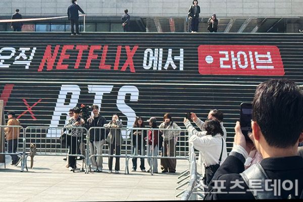 [½ºÆ÷Ã÷Åõµ¥ÀÌ ±Ç±¤ÀÏ ±âÀÚ] ¹æÅº¼Ò³â´Ü(BTS) ¼¿ï ±¤È¹®±¤Àå ÄÄ¹é °ø¿¬À» ¾ÕµÐ 17ÀÏ ¼¿ï Á¾·Î±¸ ±¤È¹®±¤Àå¿¡¼ 'BTS ÄÄ¹é ¶óÀ̺ê: ¾Æ¸®¶û(ARIRANG)' ¹«´ë¼³Ä¡¸¦ Çϰí ÀÖ´Ù. ÇÑÆí ±¤È¹®±¤ÀåÀº ¹Ì¸® ±¸°æ ³ª¿Â ÆÒµé°ú °ø¿¬À» ÁغñÁßÀÎ ÀÛ¾÷ÀÚµé·Î ºÏÀûÀ̰í ÀÖ´Ù. 2026.03.17.