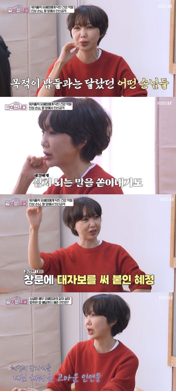 À¯ÇýÁ¤Àº "¿À¼Å¼ ±âºÐ ³ª»Û ¼Ò¸®¸¦ ÇÏ°í °¡½Ç ¶§°¡ ÀÖ´Ù. ƯÈ÷ µþÀÌ ÀÖÀ» ¶§. ¿¹¸¦ µé¸é '³Ê´Â ¾Æºü ´àÀº °Å ¾ËÁö?'¶ó°Å³ª ¾Æ´Ï¸é ¿Ü¸ð¿¡ ´ëÇØ ÁöÀûÇÒ ¶§. ±×·¡¼ µþÀÌ '¿ì¸® ¾ö¸¶ÇÑÅ× ±×·¯Áö ¸¶¼¼¿ä. ¾ö¸¶µµ ¿©ÀÚ°í »óó¹Þ¾Æ¿ä' ±×·¯´õ¶ó. ³ªÁß¿¡ µþÀÌ '³» Ä£±¸µéµµ ¾È ±×·¯´Âµ¥ ¾î¸¥µéÀÌ ¿Ö ±×·¡?' ±×·¯´õ¶ó"¸ç ¾î·È´ø µþ ¾Õ¿¡¼µµ ÀνŰø°ÝÀ» ÇÏ´ø Áø»ó¼Õ´Ô »ç·Ê¸¦ ÀüÇß´Ù.