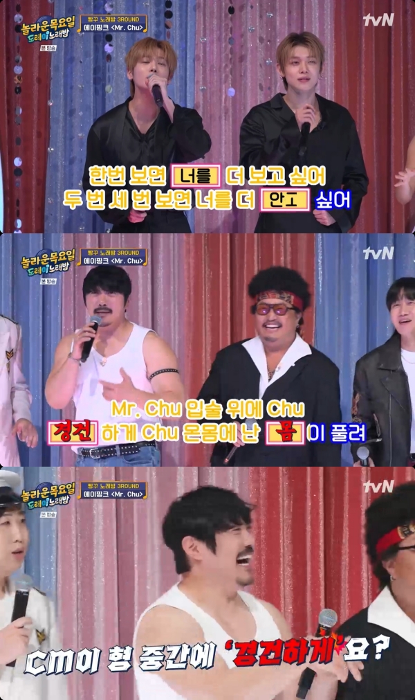 KCMÀÇ ÆÄÆ®´Â '¹Ì½ºÅÍ Ãò(Mr. Chu)'ÀÇ Èķű¸ ºÎºÐÀÎ "Mr. Chu ÀÔ¼ú À§¿¡ Chu ´ÞÄÞÇÏ°Ô Chu ¿Â¸ö¿¡ ³ ÈûÀÌ Ç®·Á"¿´´Ù.