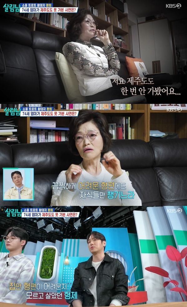 »ç½Ç ȯÈñ´Â Áý¾È ÇüÆíÀÌ ¾î·Á¿îÁö ¸ô¶ú´Ù°í. ±×´Â "ÇÐâ ½ÃÀý¿¡ Çüµµ ±×·¸°í Àúµµ ±×·¸°í ¾î¸± ¶§¶ó ¸ô¶ú´Ù. ±× Á¤µµ·Î ¾î·Æ´Ù´Â °É. ¾î¸Ó´Ï°¡ Àý´ë ³»»öÀ» ¾È Çϼ̴Ù"¶ó°í ¸»Çß´Ù. ¾Æµéµé¿¡°Ô´Â ÀüÇô °æÁ¦Àû »óȲÀ» ¾Ë¸®Áö ¾Ê°í Ȧ·Î °í±ººÐÅõ Çß´ø ¾î¸Ó´Ï ´öºÐÀ̾ú´Ù.