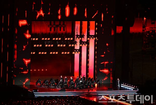 ¿ÀÈÄ 8½Ã, ¾×ÀÚ ÇÁ·¹ÀÓÀÌ ¿¬»óµÇ´Â Å¥ºêÇü ¹«´ë µÚ·Î ¹æÅº¼Ò³â´Ü ¸â¹ö 7ÀÎ ¿ÏÀüü°¡ µîÀåÇÏ¸ç °ø¿¬ÀÌ ½ÃÀ۵ƴÙ. ƯÈ÷ ¸â¹öµéÀº ±¤È¹® ±¤ÀåÀ» °¡µæ ä¿î ÆÒµé¿¡°Ô °í¸¶¿òÀ» ÀüÇß´Ù. ÁøÀº "ºÎ»ê ÄܼƮ¿¡¼ ÀúÈñ¸¦ ±â´Ù·Á ´Þ¶ó°í Çß´ø °Ô ±â¾ï¿¡ »ý»ýÇѵ¥ ÀÌ·¸°Ô ¿ÍÁּż °¨»çÇÏ´Ù"¸é¼ "ÀÌ ÀÚ¸®¿¡ ¼±â±îÁö °ÆÁ¤µµ ±äÀåµµ ¸¹ÀÌ Çß´Ù. ¿©·¯ºÐ°ú ´Ù½Ã ¸¶ÁÖÇÒ ¼ö ÀÖ¾î¼ ³Ê¹« °¨»çÇϰí ÇູÇÏ´Ù"°í ¸»Çß´Ù.