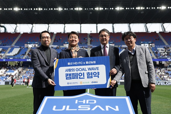 ¿ï»êÀº Áö³ 22ÀÏ ¹®¼öÃ౸°æ±âÀå¿¡¼ ¿ï»ê³óÇù°ú '»ç¶ûÀÇ °ñ ¿þÀ̺ê(GOAL WAVE)' Ä·ÆäÀÎ Çù¾à½ÄÀ» ÁøÇàÇß´Ù. À̳¯ Çù¾à½Ä¿¡´Â ¿ï»ê °¸í¿ø ´ëÇ¥ÀÌ»ç, ¿ï»ê³óÇù ÀÌÁ¾»ï ÃѰýº»ºÎÀå, µÎºÏ³óÇù Àü»óÇå º»ºÎÀå, ³ó¼Ò³óÇù Á¤Å±³ ºÐ»çÀå µîÀÌ Âü¼®ÇØ ÀÚ¸®¸¦ ºû³Â´Ù.