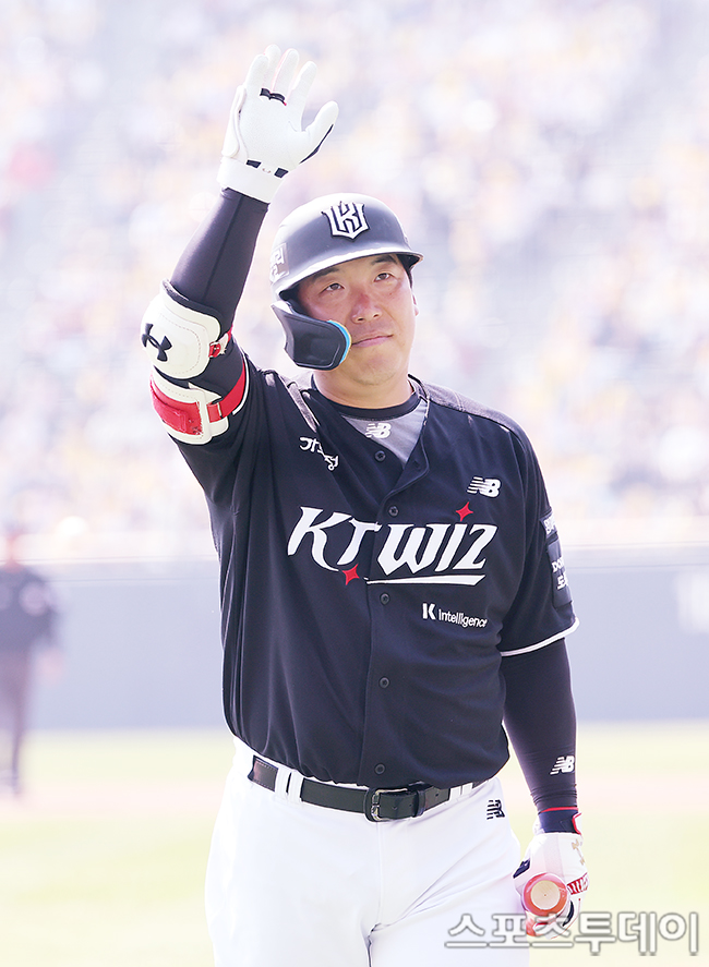 KT ±èÇö¼ö ½ÃŸ ÈÄ ÆÒµé¿¡°Ô Àλ縦 Çϰí ÀÖ´Ù. 2026.03.28.