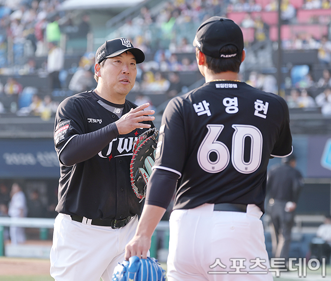 [½ºÆ÷Ã÷Åõµ¥ÀÌ ±Ç±¤ÀÏ ±âÀÚ] 2026 ½ÅÇÑ SOL Bank KBO ¸®±× KTÀ§Áî¿Í LGÆ®À©½ºÀÇ °æ±â°¡ 28ÀÏ ¼¿ï Àá½Ç¾ß±¸Àå¿¡¼ ¿·È´Ù. KT ±èÇö¼ö°¡ 8ȸ¸» ¹Ú¿µÇö°ú ÇÏÀÌÆÄÀ̺긦 Çϰí ÀÖ´Ù. 2026.03.28.