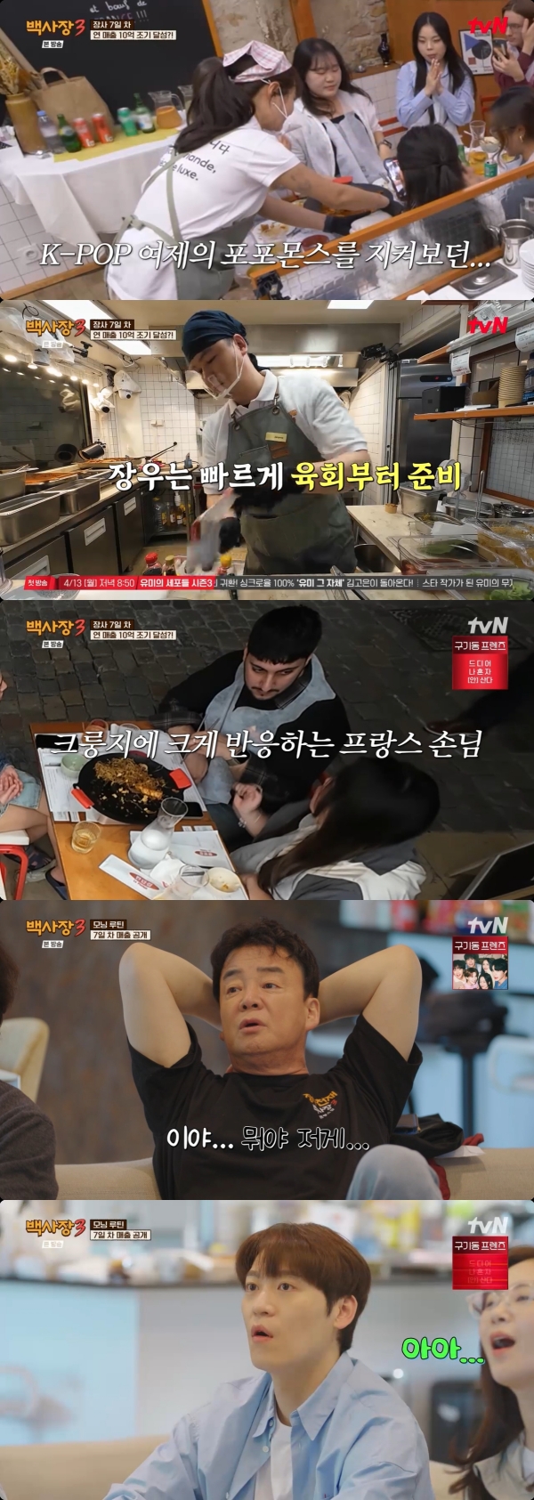 ´ÙÀ½³¯ 7ÀÏ Â÷ ¸ÅÃâÀÌ °ø°³µÆ´Ù. '¹é»çÀå' ÆÀÀº ¿¬ ¸ÅÃâ 10¾ïÀ» ´Þ¼ºÇßÀ» °ÍÀÌ¶ó ¿¹»óÇßÁö¸¸, 100À¯·Î Â÷ÀÌ·Î Á¶±â ´Þ¼º¿¡ ½ÇÆÐÇß´Ù. ¹éÁ¾¿øÀº "µü ÇÑ Å×ÀÌºí¸¸ ´õ ¹Þ¾ÒÀ¸¸é µÇÁö ¾Ê³Ä"¸ç ¾Æ½¬¿öÇß°í, À±½ÃÀ±Àº "³»°¡ ¼³°ÅÁö ÇÏ´Â µ¿¾È Å©·îÁö 3°³¸¸ ÆÈ¾Ò¾îµµ µÇ´Â °Å ¾Æ´Ï³Ä"°í Çß´Ù. Á¸¹ÚÀº ºñ³ÀÇ È»ìÀÌ Àڽſ¡°Ô ÇâÇÏÀÚ "¾Æ´Ï ¿Ö ÀúÇÑÅ× ¸ðµç Å¿À» ÇϳÄ. Àú´Â ¸Þ´º°ª ½Î´Ù°í ÇØ¼ ÀüüÀûÀÎ °¡°ÝÀ» ¿Ã¸° °Å´Ù"¶ó¸ç ¾ï¿ïÇØÇß´Ù. °á±¹ '¹é»çÀå' ÆÀÀº ³²Àº 100À¯·Î¸¦ ä¿ì±â À§ÇØ ´Ù½Ã °¡°Ô·Î ÇâÇß´Ù.