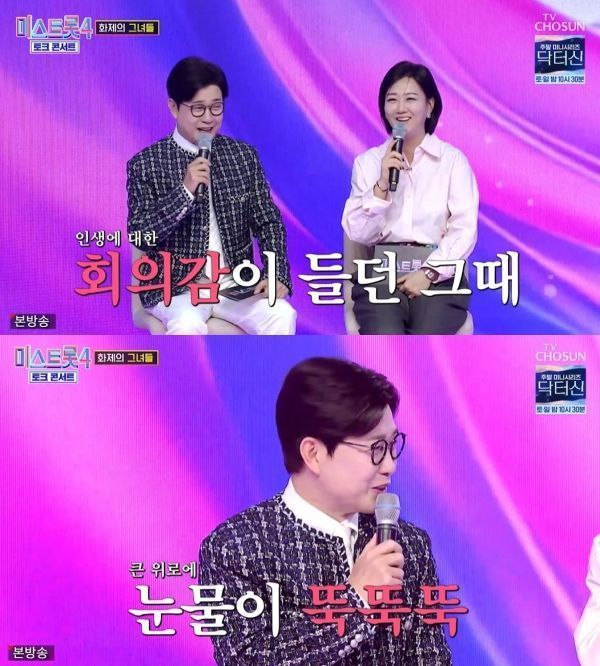 ÀÌ¾î ±â¾ï¿¡ ³²´Â Àå¸é¿¡ ´ëÇÑ À̾߱⸦ ÇÏ´ø Áß, '±è¼ºÁÖ°¡ ¿ï¸é ±× Âü¿©ÀÚ°¡ Àß µÈ´Ù'¶õ ¼Ó¼³ÀÌ ¾ð±ÞµÆ´Ù. ÀÌ¿Í °ü·ÃÇØ ±è¼ºÁÖ´Â "Á¦°¡ ÀÓ¿µ¿õ ¾¾ '¾î´À 60´ë ³ëºÎºÎ À̾߱â' ¹«´ë¿¡¼ óÀ½À¸·Î ´«¹°À» º¸¿´´Ù. ÀÌ°Ô Á» µµÀüÀÚ¿¡°Ô ¿µÇâÀ» ¹ÌÄ£´Ù°í ÇØ¼ ¸¹ÀÌ ÀÚÁ¦Çß´Ù"¶ó°í Åоî³õ¾Ò´Ù.