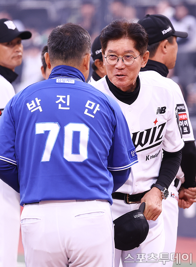 [¼ö¿ø=½ºÆ÷Ã÷Åõµ¥ÀÌ ÆØÇöÁØ ±âÀÚ] 3ÀÏ ¼ö¿øKTÀ§ÁîÆÄÅ©¿¡¼­ ¿­¸° 2026 KBO¸®±× »ï¼º ¶óÀÌ¿ÂÁî¿Í KT À§ÁîÀÇ °æ±â, KT À̰­Ã¶ °¨µ¶ÀÌ »ï¼º ¹ÚÁø¸¸ °¨µ¶°ú ÀλçÇϰí ÀÖ´Ù. 2026.04.03.