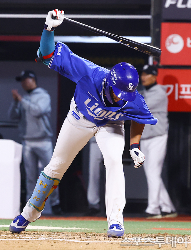 [¼ö¿ø=½ºÆ÷Ã÷Åõµ¥ÀÌ ÆØÇöÁØ ±âÀÚ] 3ÀÏ ¼ö¿øKTÀ§ÁîÆÄÅ©¿¡¼­ ¿­¸° 2026 KBO¸®±× »ï¼º ¶óÀÌ¿ÂÁî¿Í KT À§ÁîÀÇ °æ±â, 6ȸÃÊ 2»ç 3·ç »ï¼º ±è¿µ¿õÀÌ »ïÁø¾Æ¿ôÀ» ´çÇÏ¸ç ¹Ù´Ú¿¡ ¹æ¸ÁÀ̸¦ ´øÁö°í ÀÖ´Ù. 2026.04.03.