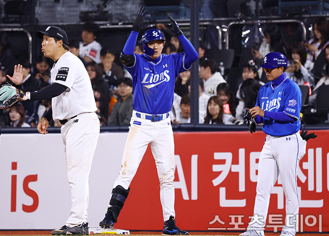[¼ö¿ø=½ºÆ÷Ã÷Åõµ¥ÀÌ ÆØÇöÁØ ±âÀÚ] 3ÀÏ ¼ö¿øKTÀ§ÁîÆÄÅ©¿¡¼ ¿¸° 2026 KBO¸®±× »ï¼º ¶óÀÌ¿ÂÁî¿Í KT À§ÁîÀÇ °æ±â, 8ȸÃÊ 1»ç »ï¼º ±¸ÀÚ¿íÀÌ ¾ÈŸ¸¦ Ä¡°í ÀÖ´Ù. 2026.04.03.