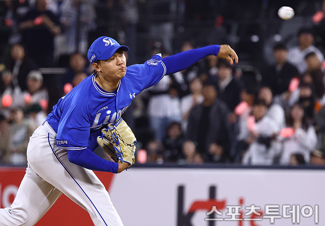 [¼ö¿ø=½ºÆ÷Ã÷Åõµ¥ÀÌ ÆØÇöÁØ ±âÀÚ] 3ÀÏ ¼ö¿øKTÀ§ÁîÆÄÅ©¿¡¼ ¿¸° 2026 KBO¸®±× »ï¼º ¶óÀÌ¿ÂÁî¿Í KT À§ÁîÀÇ °æ±â, 8ȸ¸» »ï¼º ¹èÂù½ÂÀÌ ¿ªÅõÇϰí ÀÖ´Ù. 2026.04.03.