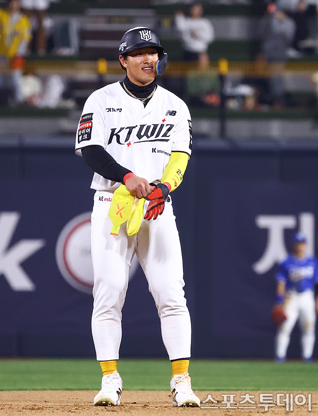 [¼ö¿ø=½ºÆ÷Ã÷Åõµ¥ÀÌ ÆØÇöÁØ ±âÀÚ] 3ÀÏ ¼ö¿øKTÀ§ÁîÆÄÅ©¿¡¼ ¿¸° 2026 KBO¸®±× »ï¼º ¶óÀÌ¿ÂÁî¿Í KT À§ÁîÀÇ °æ±â, 8ȸ¸» 2»ç ÁÂÀü¾ÈŸ¸¦ ¶§¸° KT ¾ÈÇö¹ÎÀÌ ¼öºñ ½ÇÃ¥À¸·Î 2·ç±îÁö Ãâ·çÇϰí ÀÖ´Ù. 2026.04.03.
