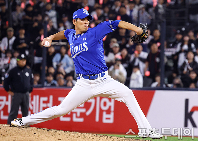 [¼ö¿ø=½ºÆ÷Ã÷Åõµ¥ÀÌ ÆØÇöÁØ ±âÀÚ] 3ÀÏ ¼ö¿øKTÀ§ÁîÆÄÅ©¿¡¼ ¿¸° 2026 KBO¸®±× »ï¼º ¶óÀÌ¿ÂÁî¿Í KT À§ÁîÀÇ °æ±â, 9ȸ¸» »ï¼º ±èÀçÀ±ÀÌ ¿ªÅõÇϰí ÀÖ´Ù. 2026.04.03.