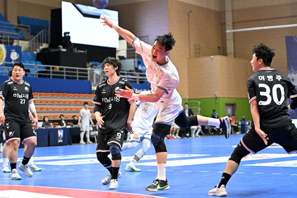 ¾ç ÆÀ °ñŰÆÛÀÇ ¼±¹æ ¼î°¡ À̾îÁö´Â °¡¿îµ¥ Çϳ²½ÃûÀÌ À̺´ÁÖ¿Í ±èÂù¿µ, ÀÌÇö½ÄÀÇ ¿¬¼Ó °ñ·Î 23-22, 1°ñ Â÷·Î ´Ù½Ã µû¶óºÙ¾ú´Ù. ÀÌ¾î ¹ÚÀç¿ë °ñŰÆÛÀÇ ¼¼À̺꿡 ÀÌÀº ¿ø½ÂÇöÀÇ °ñ·Î ¸¶Ä§³» 23-23 µ¿Á¡À», ÀÌÇö½ÄÀÇ ¿À¹ö ½¸À¸·Î ¿ªÀü¿¡ ¼º°øÇß´Ù. ÇÏÁö¸¸ Çϳ²½ÃûÀÇ ½ÇÃ¥ÀÌ ¿¬´Þ¾Æ ³ª¿À¸é¼ ÀÎõÀÌ ºü¸£°Ô 5°ñÀ» ¸ô¾Æ³ÖÀ¸¸é¼ 28-24·Î ´Þ¾Æ³ª¸ç ½Â±â¸¦ Àâ¾Ò´Ù. °á±¹ ÀÎõÀÌ 30-27·Î À̰å´Ù.